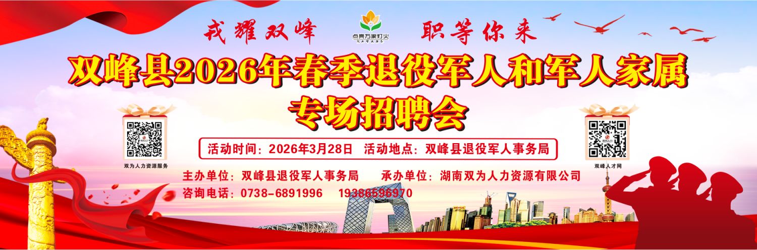 双峰县2026年春节退役军人和军人家属专场招聘会